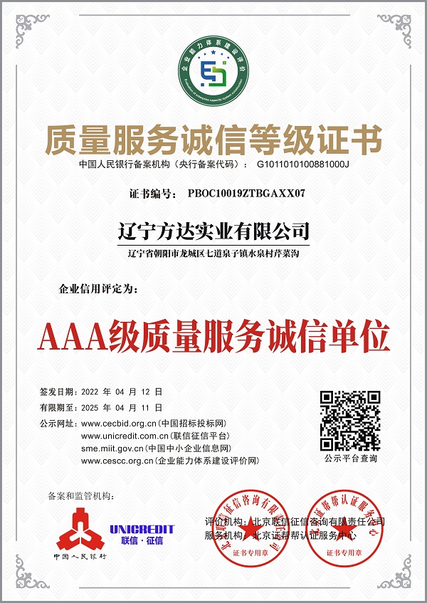 2001 朝陽市龍城方達鑄鋼廠正式成立